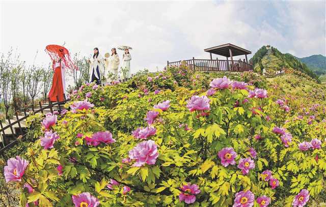 2020年3月23日,在墊江縣愷之峰旅游區,漫山遍野的牡丹花進入盛花期,吸引了不少市民踏青賞花。特約攝影 向曉秋/視覺重慶