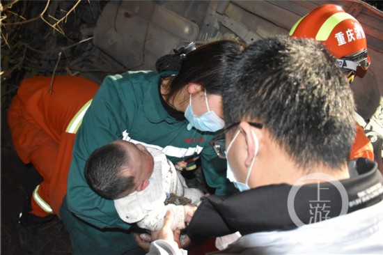 2月17日,豐都縣名山鎮新提場村4組一條山路上,一輛家用轎車沖下山崖,車內多人被困,其中還有一名3個月大的嬰兒。接到報警后,重慶豐都縣平都消防救援站立即出動兩輛消防車12名指戰員趕往現場救援。