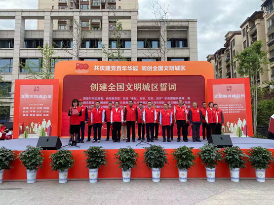 人民網重慶4月16日電 為打通宣傳群眾、教育群眾、關心群眾、服務群眾的“最后一公里”,打造凝聚人心的“精神家園”,4月15日,以“共慶建黨百年華誕 同創全國文明城區”為主題的萬州區2021年新時代文明實踐示范活動在萬州區牌樓街道石峰社區廣場啟動。