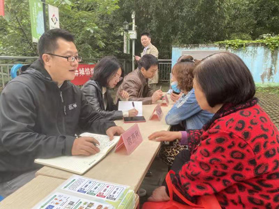 人民網重慶4月16日電 “您好,請問您有什么問題需要反映?”16日,位于渝北區龍山街道旗山路社區的凡閣小區格外熱鬧。這里正在舉辦“院壩聽民意、協商解民情、宣傳助分類——政協委員在行動”志愿服務活動,來自重慶市政協、渝北區政協的政協委員們正在向前來參加活動的居民收集社情民意。