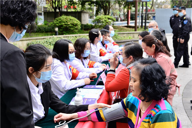 參會專家為市民進行科普宣教和義診活動。院方供圖