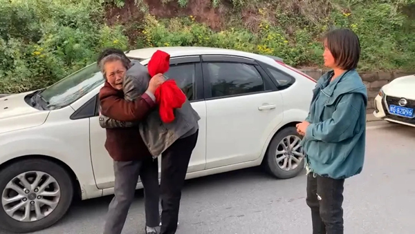 劉剛與母親彭菊深情相擁。合川警方供圖