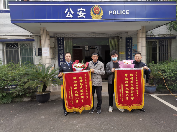 “孩子能夠回來,全靠我們的民警不分日夜走訪調查聯系,真的太感謝了!”4月20日上午,70歲的王正富在劉剛的陪同下來到合川區公安局,將錦旗送到大石派出所所長段遠向和民警龍明的手中,感謝民警讓他們一家人得以團聚。