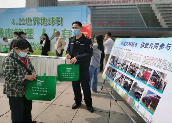“城市管理、人人有責”主題宣傳活動現場。重慶火車北站地區綜合管理局供圖