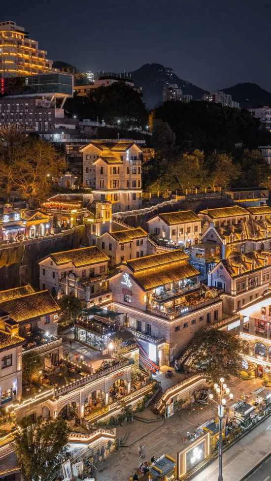 立體的城市建筑在山間不斷地向上生長,不同形態的建筑融合在同一個畫面,獨特而魔幻。張坤琨 攝