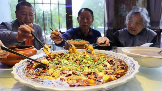 沙坪壩沈姐烤魚,雞雜配上烤魚,味道一絕。黃軍 攝