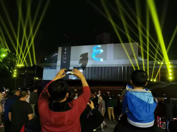 現場,投影秀以站臺墻面為畫布、光影為筆墨,與變換跳動的燈光碰撞、與動人心弦的音樂交融,壯觀絢麗的呈現創新啟程、智造未來、田園人居三大主題。