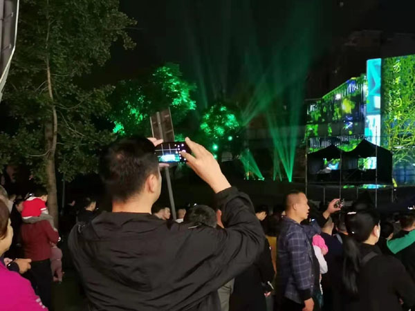 市民紛紛前來觀看3D投影秀。謝佳潔攝