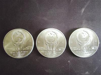 彭先生介紹,最有意義的是成套的紀念幣。例如為慶祝新中國成立35周年,中國人民銀行于1984年10月1日發行了中華人民共和國成立35周年紀念幣一套。該套紀念幣共3枚,印有天安門城樓前,以漢、蒙、藏、維、高山族人物形象組成的象征全國各族人民群眾歡歌躍舞大團結的情景的“民族大團結”;印有長青松樹、巍峨長城等圖案的“祖國萬歲”。