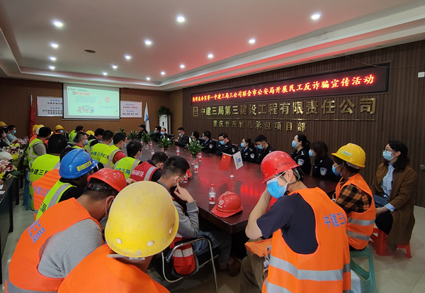 人民網重慶4月29日電 “您的個人信息可能已經泄露,建議您這邊及時向公安機關報警,我可以給您接通到徐匯分局······”4月28日下午,中建三局三公司聯合重慶市公安局在重慶世貿城項目部開展農民工反詐騙宣傳活動,公安民警通過真實案例,給40余名建筑工人上了一堂生動的反詐課。