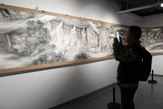 人民網重慶5月7日電 7日,以世界文化遺產大足石刻為題材的50米國畫巨幅長卷《寶頂石窟畫卷》在大足區美術館首次展出。