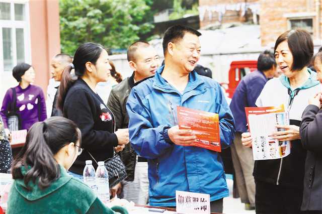 5月7日,梁平區聚奎鎮聚奎村辦公樓前,應聘群眾在了解企業用工需求。