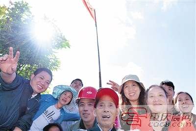 5年前,江津四屏鎮青堰村88歲的丁文啟帶領家人上插旗山升國旗 從那以后,丁文啟一家三代20多人,一直默默守護著插旗山上的國旗