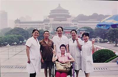 由于傷勢嚴重,在綿陽治療時衡永紅已被計劃截肢,幸運的她第一批轉到重慶市急救醫療中心醫治。為了保住衡永紅的腿,重慶市急救醫療中心成立了由院長、副院長、骨科主任、外科主任、感染科主任、護理主任組成的特別治療組,實行24小時三班倒診療。