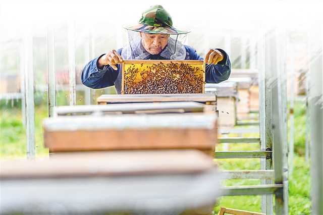 王貞六苦學養蜂技術脫貧致富后,還將幾十桶蜂送給周邊村民,免費為他們講解養殖技術,帶動鄉親一起發展甜蜜事業。