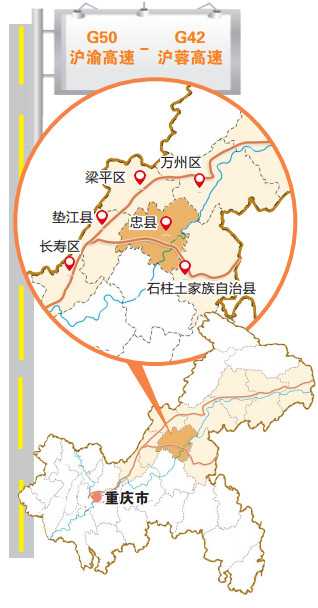 2000年,隨著G50滬渝高速渝長(壽)段通車,以及忠縣段建設列入規劃,讓忠縣看到了發展柑橘的新機遇,提出沿著G50滬渝高速布局百里柑橘長廊和發展長江兩岸柑橘生態走廊的戰略,打造忠縣新名片。