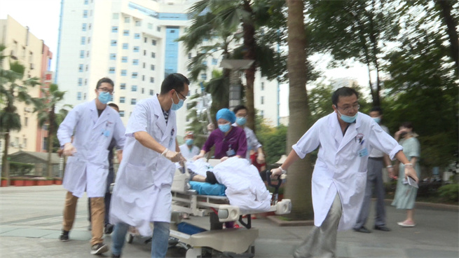 江津區中心醫院很快派出急救車將龍成接診入院,醫生發現病人生命體征極不穩定,預判鋼筋有可能穿透多個臟器,需要多個外科學科的專家聯合手術才有保命可能,立即幫助病人聯系陸軍特色醫學中心戰創傷醫學科。