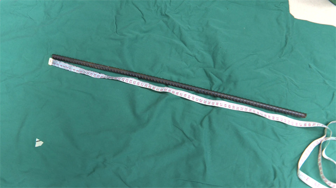 由沈岳教授親自緩慢拔出體內長達67厘米的鋼筋。隨后,各組專家各司其職,輪番上陣,為其修補好肺臟、隔肌、腸系膜等破損處。讓大家揪心的是,術中,病人曾雙側瞳孔變大,生命體征一度危急,經醫生努力又將病人從鬼門關拉了回來。