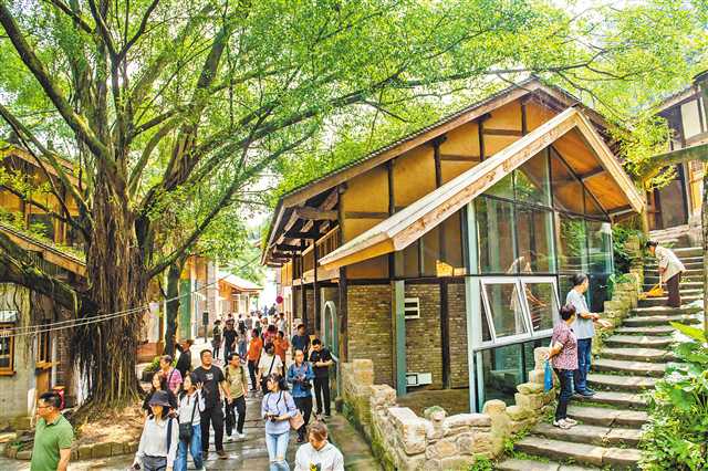 5月18日,位于北碚區的北塘峽江步道金剛碑段,游客穿行在古樸的傳統建筑與高大茂盛的黃葛古樹中。今年重慶中心城區有5條步道納入重點民生實事項目,其中北塘峽江步道已累計建成約12公里,其串聯的景點之一金剛碑整個核心區在修繕中最大程度保留了建筑的本貌,目前已基本完工,預計在年底正式開放。據悉,我市正加快推進中心城區17條約353公里山城步道建設,截至目前,鴻恩步道、重鋼步道等17條均已開工建設,歌樂山步道、沙磁步道等約198公里建成投用。記者 張錦輝 攝/視覺重慶