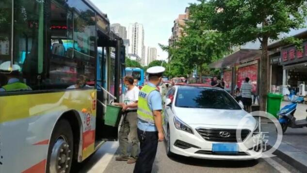 大隊民警立即前去查看,原來是一輛白色小轎車停在了公交車站臺。民警立即聯系車主告知其駛離。