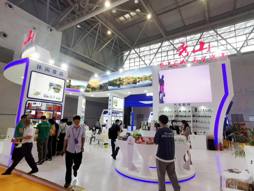 本屆西洽會秀山展廳位于N8館,展示面積為150平方米。為更好凸顯西洽會主題,秀山縣展廳以現代風格為主,展廳分為中藥、電子、食品、農業產品展柜,著重突出琳瑯滿目的產品,并配以藍色科技感燈飾、頂棚流暢圖冊,彰顯蓬勃迸發的未來感。