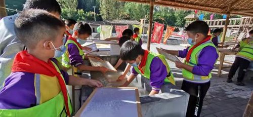 青少年參與研學活動,正在體驗造紙。云陽縣文旅委供圖