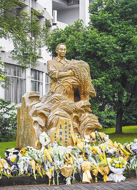 5月22日,西南大學,師生們紛紛自發來到校園中的袁隆平塑像前敬獻鮮花,以寄托哀思。記者 萬難 攝/視覺重慶