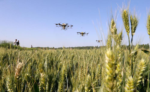 時下,山東省青島市即墨區50余萬畝冬小麥進入灌漿成熟的關鍵期。當地農業部門引導農民強化麥田科技管理,利用植保無人機進行大規模田間作業,提高麥管效率,確保夏糧豐收。
