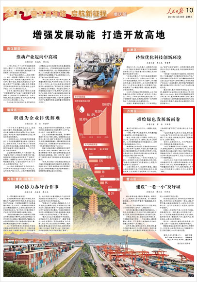 2020年,長江干流萬州段水質保持優良,總體穩定在Ⅱ類,主要次級河流地表水水質達標率為100%,長江兩岸森林覆蓋率達70%?諝赓|量優良天數達346天,創歷史新高,其中,PM2.5年均濃度為32微克/立方米,實現歷史“最優”。
