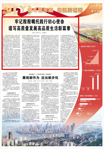 今年是中國共產黨成立100周年。重慶是一塊英雄的土地,有著光榮的革命傳統。百年來,重慶人民在黨的領導下不懈奮斗、砥礪前行,取得一個又一個重大勝利,巴渝大地發生翻天覆地變化。這些年來,我們全面貫徹習近平總書記提出的營造良好政治生態,堅持“兩點”定位、“兩地”“兩高”目標,發揮“三個作用”和推動成渝地區雙城經濟圈建設等重要指示要求,把握新發展階段、貫徹新發展理念、融入新發展格局,更加注重從全局謀劃一域、以一域服務全局,推動重慶各項事業邁上新臺階。