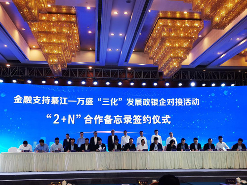 在活動現場,綦江區、萬盛經開區與銀行機構簽訂了“2+N”合作備忘錄和貸款協議。根據備忘錄,29家銀行機構向綦江-萬盛“三化”發展總體意向性授信1170億元,16家銀行機構向綦江、萬盛企業代表現場放款13.03億元。