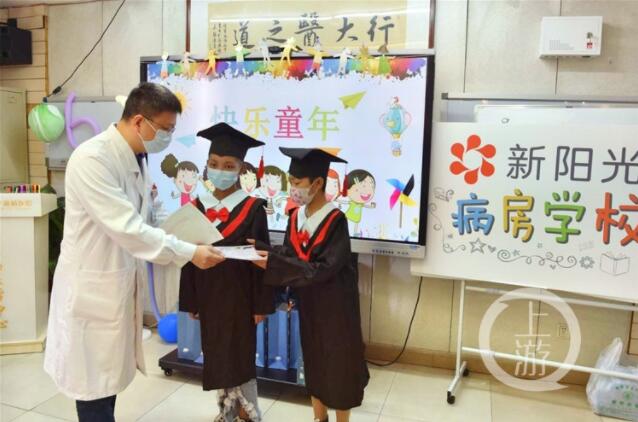 “今天我畢業啦!”31日,在陸軍軍醫大學新橋醫院血液病醫學中心“新陽光病房學!迸e行的主題畢業典禮上,剛接過畢業證書的妮妮(化名)小朋友高興地說到:“今天,我也能像我同學一樣拿到畢業證了,把在病房學校學到的知識和快樂帶回去與同學們分享!”這個六一兒童節,妮妮收到了一份特殊的兒童節禮物。
