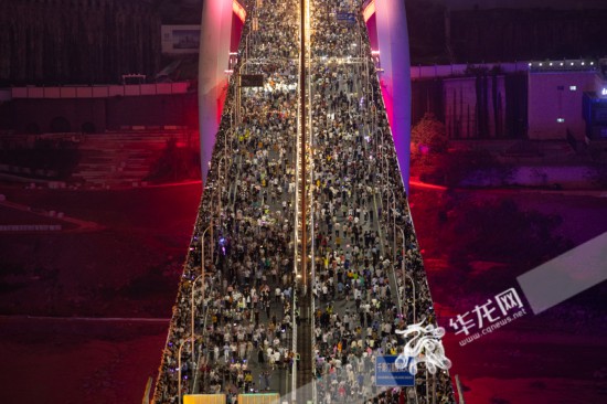 今年“五一”期間,千廝門大橋上人頭攢動。華龍網記者 張質 攝