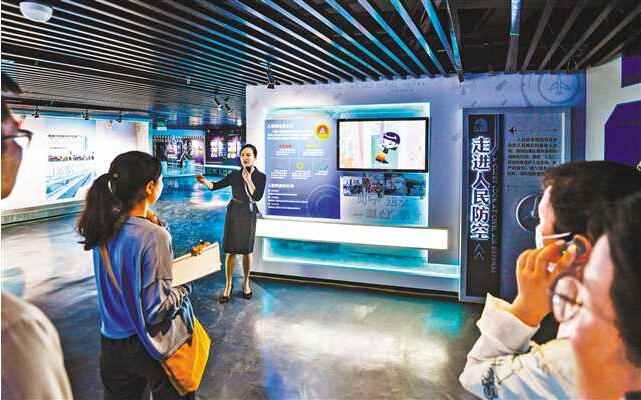 在這里,參觀者還可以到感應區試聽三種不同類型的警報,了解各類警報的特點、發報規律和鳴放時機;查詢了解按構筑形式、抗力等級、防化等級等方式劃分的人防工程類型,早期人防工程的建設、開發利用等珍貴影像。