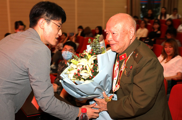 一個多小時的講述,精彩故事一個接一個,倪老時而沉默哽咽,時而慷慨激昂,同學們的思緒也隨之起伏,仿佛置身于那段戰火紛飛的年代,無不為今天來之不易的幸福生活而由衷感嘆。