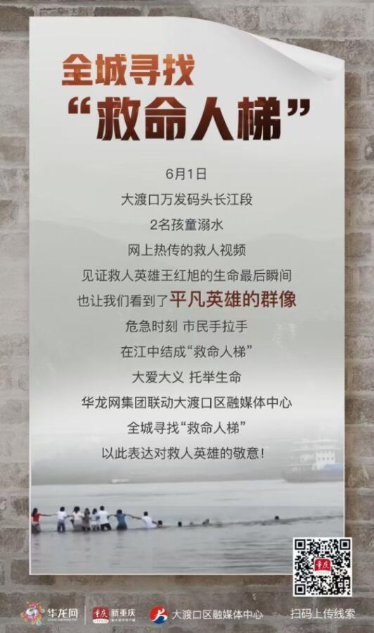 6月4日,華龍網--新重慶客戶端發布《這座城很多好心人!請轉發尋找“救命人梯”》一文在社會上引起強烈反響,不少熱心市民積極參與。到目前為止,已經找到了6名平凡英雄。