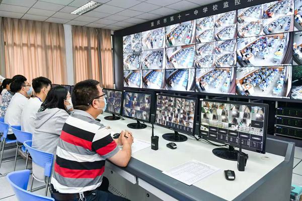 重慶十一中考點監控室,對考場進行實時監控。鄒樂攝