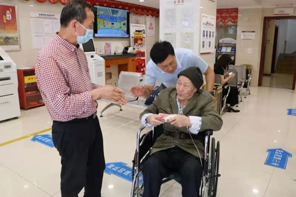 合力社區黨總支書記曹斌幾乎每月都會前往醫院看望鄧步超老人,為這個沒有子女的老人帶去黨和政府的溫暖。今年初,在曹斌看望鄧步超老人時,老人很鄭重地對他說到:“曹書記,跟你說個事,以前我當赤腳醫生的時候存了點錢,今年是建黨100周年,我想捐獻兩萬元,報答社會,感謝黨和政府、感謝社區這么多年對我的幫助和照顧。你能不能幫幫我?”