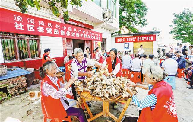 6月4日,墊江縣澄溪鎮勝利社區組織老黨員與鄰里鄉親一起包粽子、講黨史、話黨恩,共迎端午節。特約攝影 向曉秋/視覺重慶