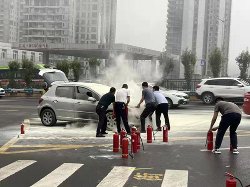 “當時,我發現一輛轎車停到路邊,車的機蓋處冒著黑煙,還有火花濺出!碧m溪社區邱麗回憶說。因為以前負責過這塊工作,對車輛自燃的危險以及滅火知識有一定了解,她第一時間招呼同事參與滅火。
