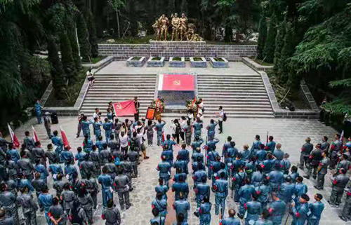 人民網重慶6月17日電 為了激勵廣大黨員干部樹立堅定的理想信念,大力弘揚長征精神,16日,綦江旅游度假區管委會聯合綦江區石壕鎮政府,開展慶祝中國共產黨成立100周年“重走長征路·奮進新征程”主題教育活動。