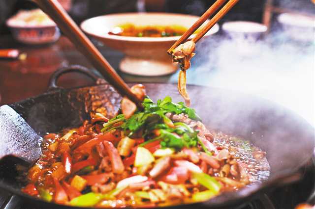 30多年前,黔江雞雜就從一盤菜變成了一口鍋,這種烹飪形式一直延續至今。(黔江區委宣傳部供圖)