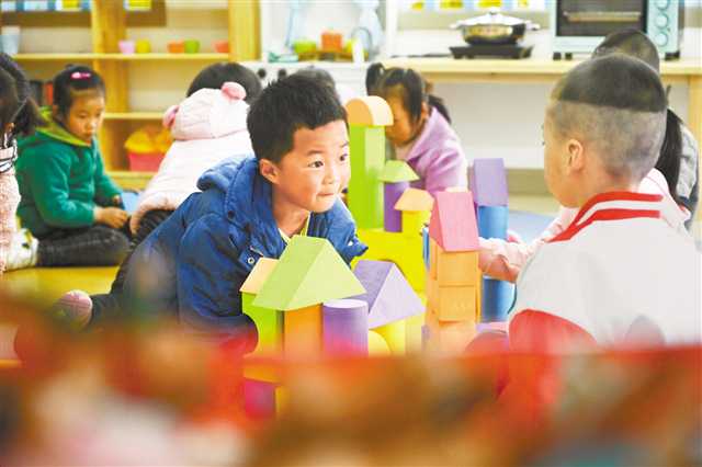石柱土家族自治縣中益鄉,孩子們在新建成的幼兒園里搭積木,享受著幸福的童年時光。(攝于三月三十日)記者 萬難 攝\視覺重慶