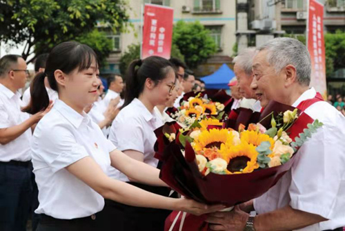 為老黨員們獻花致敬。土主街道供圖