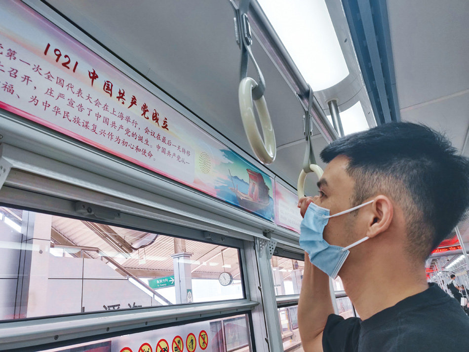 市民游客通過“奮進號”專列了解黨的百年歷史。重慶交通開投軌道集團供圖