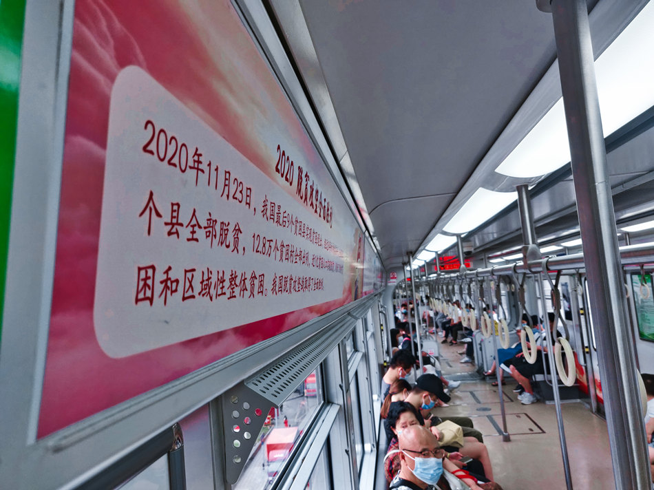 市民游客通過“奮進號”專列了解建黨100年歷史。重慶交通開投軌道集團供圖