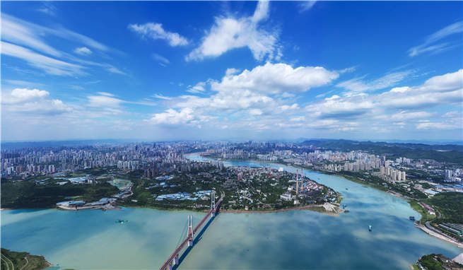 藍天白云下的九龍半島。九龍坡區生態環境局供圖