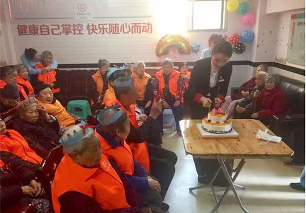 陪老人們過集體生日。中信銀行重慶分行供圖