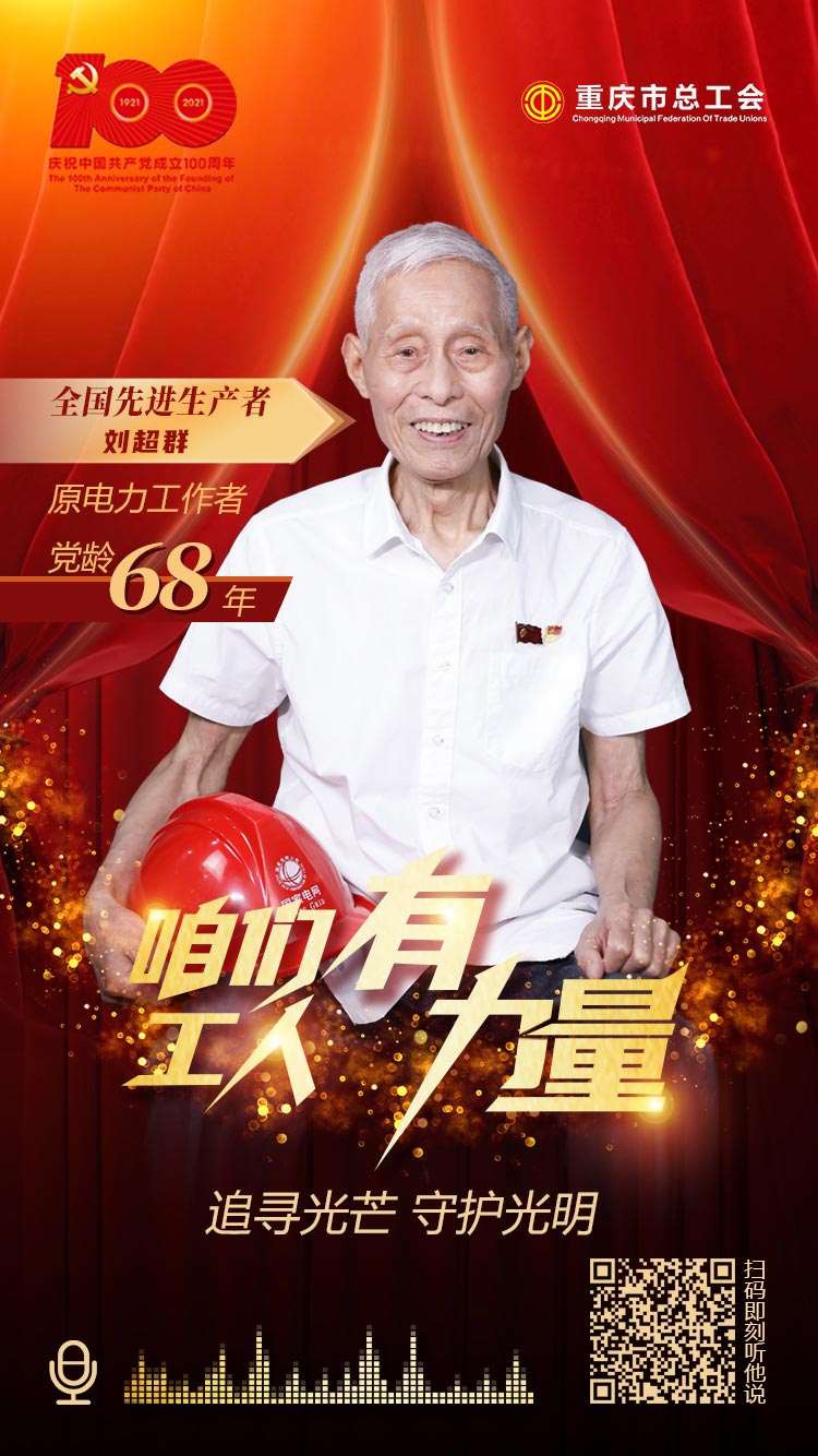 我是全國先進生產者劉超群,入黨68年了,我曾經是一名電力工作者,人民電力為人民的宗旨給了我力量,讓我永遠走在守護萬家燈火的路上。