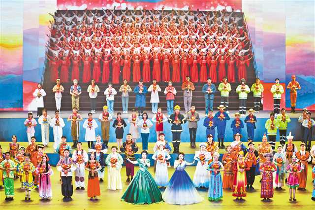 6月28日,“永遠跟黨走——重慶市慶祝中國共產黨成立100周年文藝演出”在重慶大劇院舉行。圖為合唱《唱支山歌給黨聽》。記者 齊嵐森 攝/視覺重慶